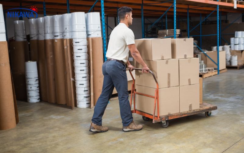 Xe đẩy hàng là công cụ hỗ trợ phổ biến giúp giảm sức lao động khi di chuyển hàng hóa
