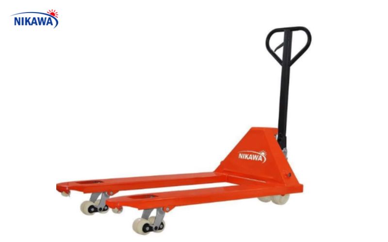 Pallet jack hay còn gọi là xe nâng tay là dụng cụ chuyên dụng để nâng và di chuyển pallet, thích hợp cho kho bãi, siêu thị, nhà máy sản xuất. Pallet jack giúp nâng hàng lên khỏi mặt sàn, dễ dàng di chuyển trên quãng đường dài mà vẫn đảm bảo ổn định. Loại xe này có ưu điểm là thiết kế đơn giản, dễ sử dụng và chi phí đầu tư thấp hơn so với các loại xe nâng điện hoặc xe nâng động cơ. Pallet jack phù hợp với vật nặng có khối lượng lớn, đặc biệt là hàng hóa đóng pallet, thùng lớn hoặc máy móc thiết bị. Khi chọn pallet jack, người dùng cần lưu ý tải trọng tối đa, chiều cao nâng và kích thước càng nâng để phù hợp với pallet và không gian lưu trữ. Ngoài ra, việc kiểm tra chất lượng bánh xe, hệ thống thủy lực và tay cầm cũng quyết định đến độ bền và sự an toàn khi sử dụng.