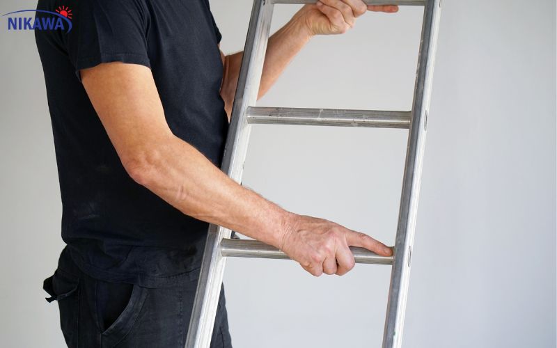 Khi vận chuyển thang, luôn giữ thang theo chiều dọc, không ném hoặc kéo lê trên mặt đất để tránh làm biến dạng bậc hoặc khung nhôm.