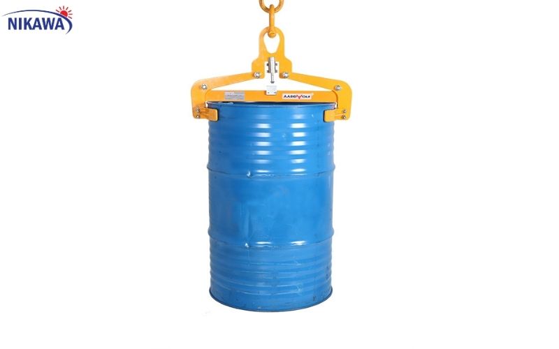 Kẹp nâng thùng phuy thường được sử dụng kết hợp với xe nâng động cơ hoặc cẩu trục. Thiết bị này có nhiệm vụ giữ chặt thân thùng phuy trong quá trình nâng, giúp việc bốc xếp lên cao hoặc xếp chồng trở nên an toàn hơn. Kẹp nâng đặc biệt phù hợp với kho xưởng có trần cao hoặc cần sắp xếp thùng phuy lên kệ.