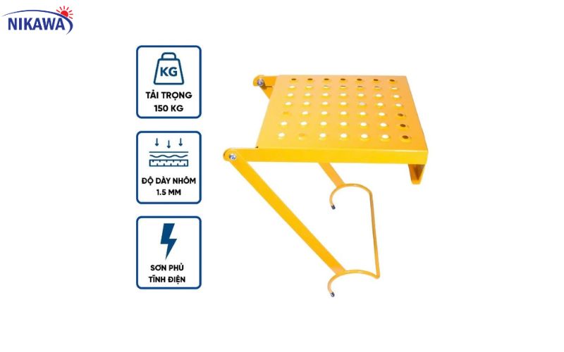 Chính vì vậy, các phụ kiện hỗ trợ an toàn thang nhôm ra đời, trong đó nổi bật là ván thang rảnh tay Nikawa. Sản phẩm này không chỉ giúp mở rộng diện tích đứng, tăng độ vững chắc mà còn mang lại sự an tâm và hiệu quả cao hơn trong công việc.